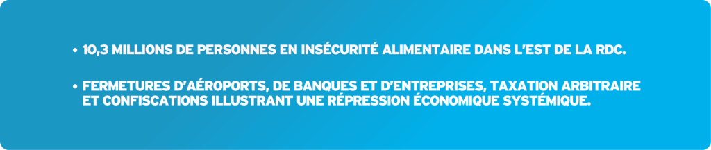 Depuis l’été 2025, les combats se sont intensifiés dans le Nord-Kivu, le Sud-Kivu et l’Ituri. L’occupation s’est transformée en administration de facto, avec des effets directs sur la sécurité, l’accès aux services essentiels et les moyens de subsistance. Près de 10,3 millions de personnes sont en situation d’insécurité alimentaire, dont 2,3 millions en situation d’urgence.